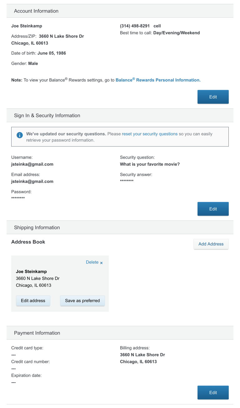 Edit Personal Information